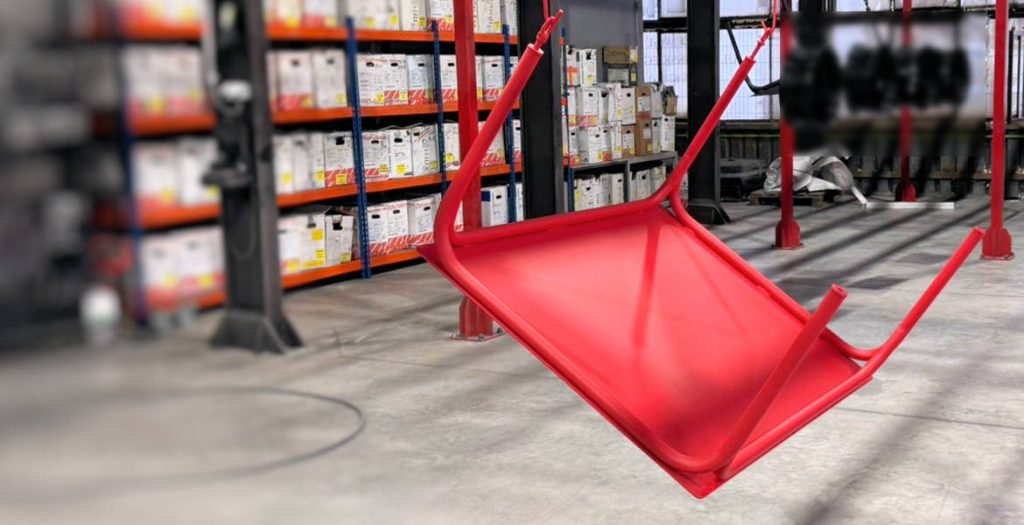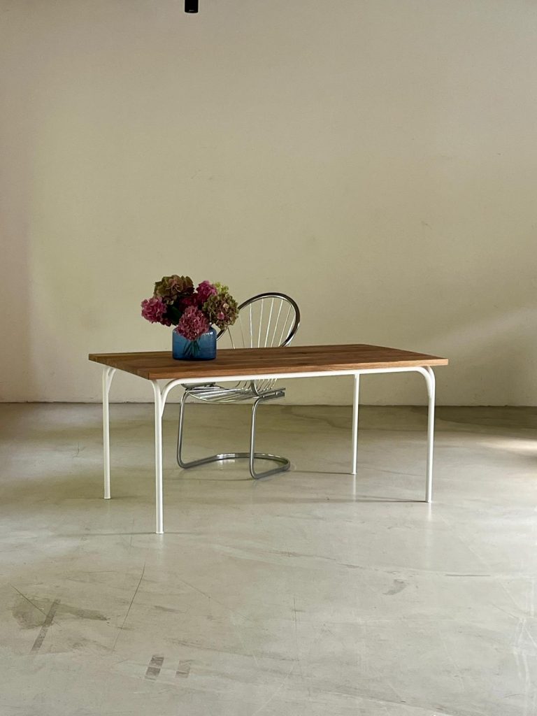 Jedes Möbelstück entsteht in der eigenen Manufaktur aus gebogenen Stahlrohren, von Hand verschweißt und pulverbeschichtet. Die bewusst sichtbare handwerkliche Verarbeitung verleiht den Objekten eine direkte, ehrliche Präsenz: klare Geometrie trifft auf lebendige Materialität.